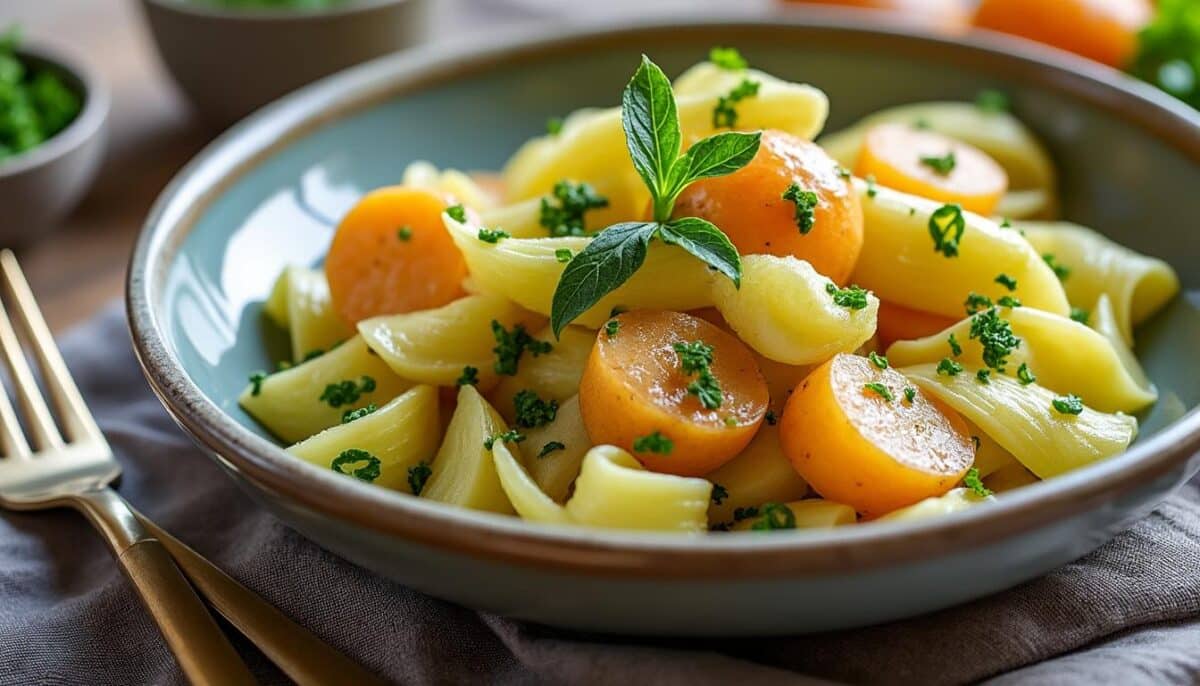 - Frische Kräuter unterheben. Den Salat mindestens 15 Minuten ziehen lassen, damit sich die Aromen verbinden.